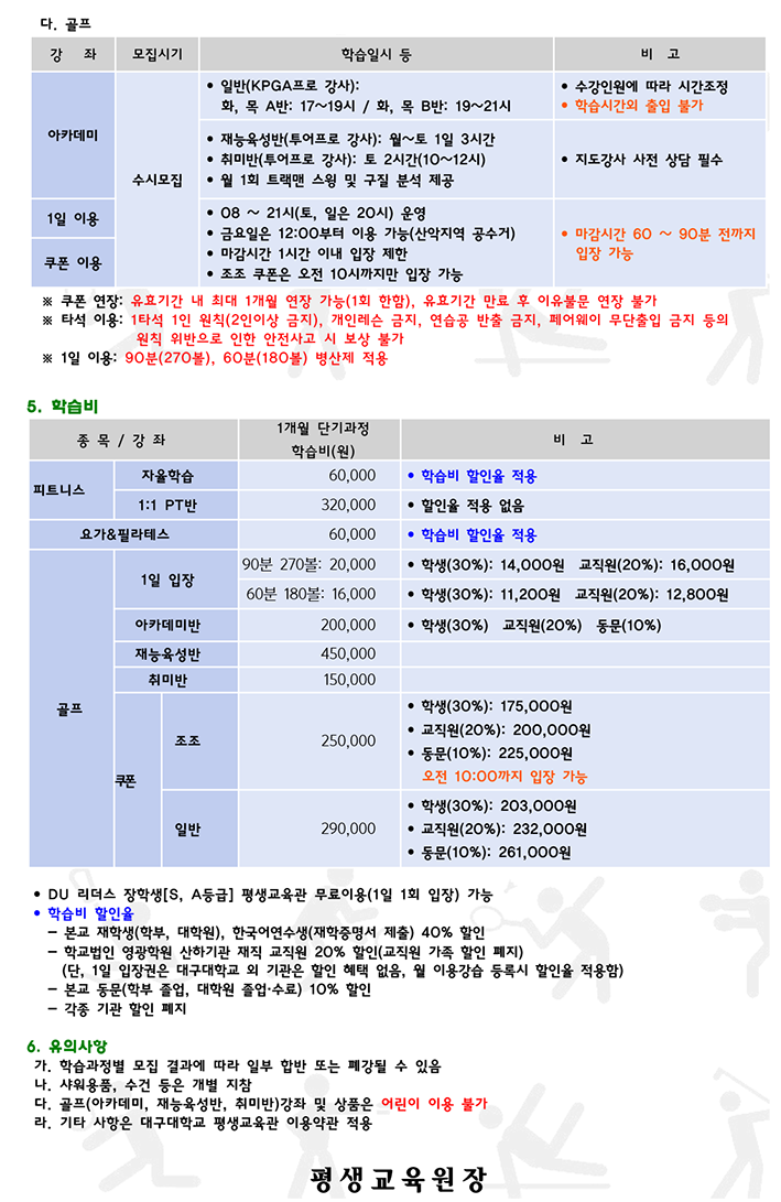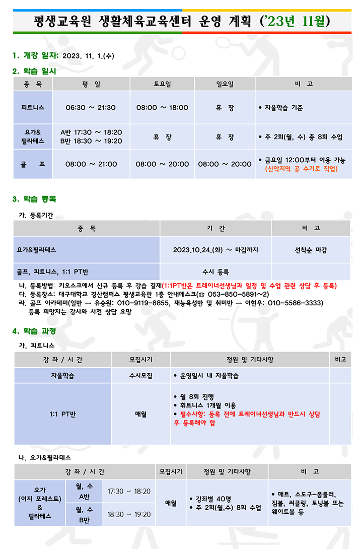 2023년 11월 생활체육교육센터 운영 계획(안)