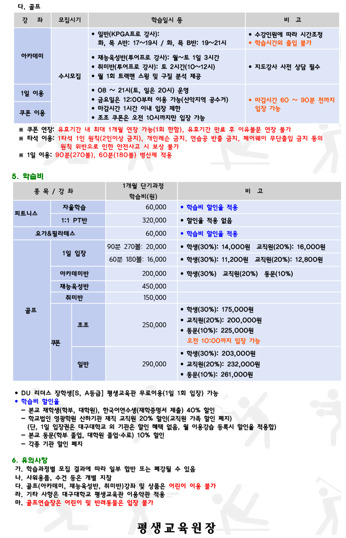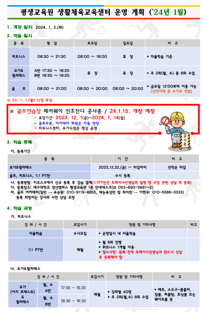 2024년 1월 생활체육교육센터 운영 계획(안)