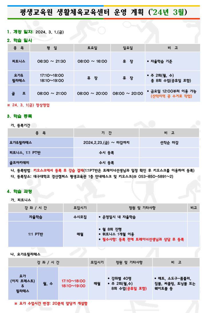 2024년 3월 생활체육교육센터 운영 계획(안)