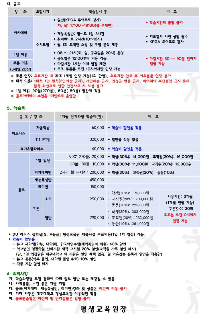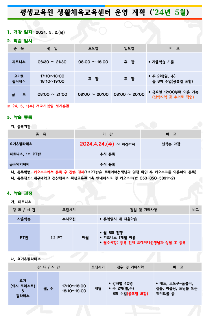 2024년 5월 생활체육교육센터 운영 계획(안)