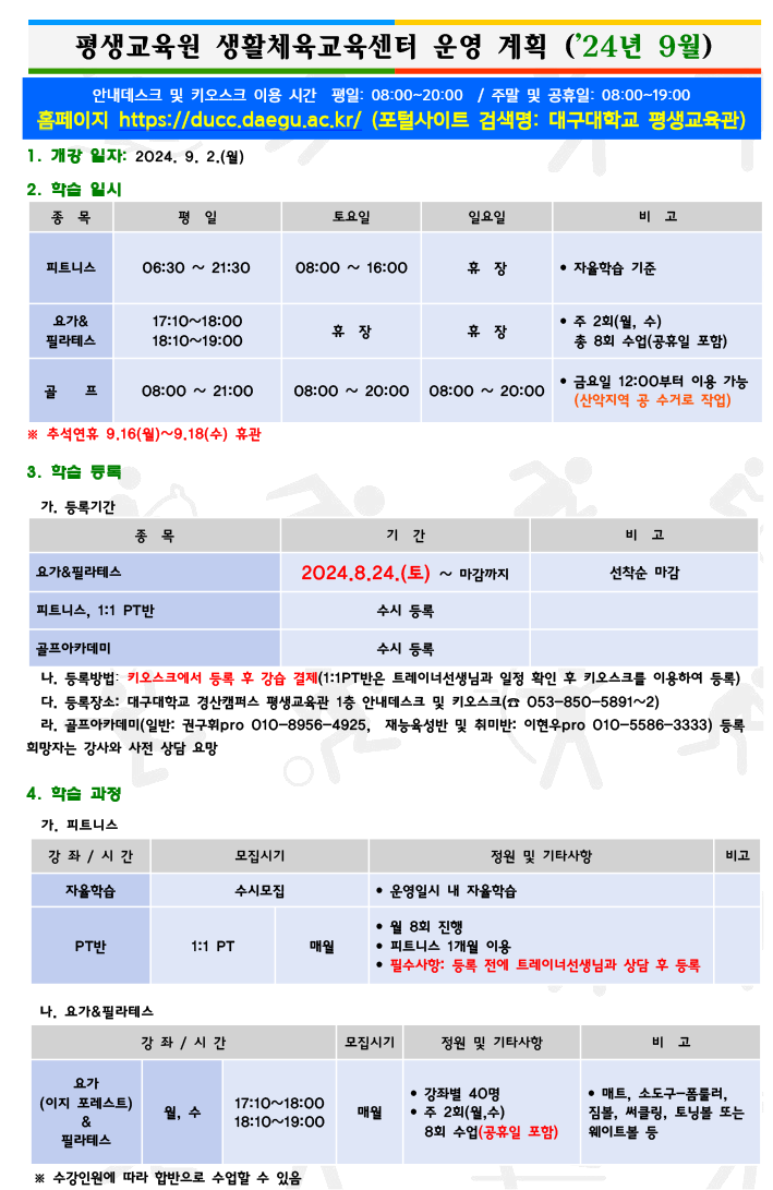 2024년 9월 생활체육교육센터 운영 계획(안)