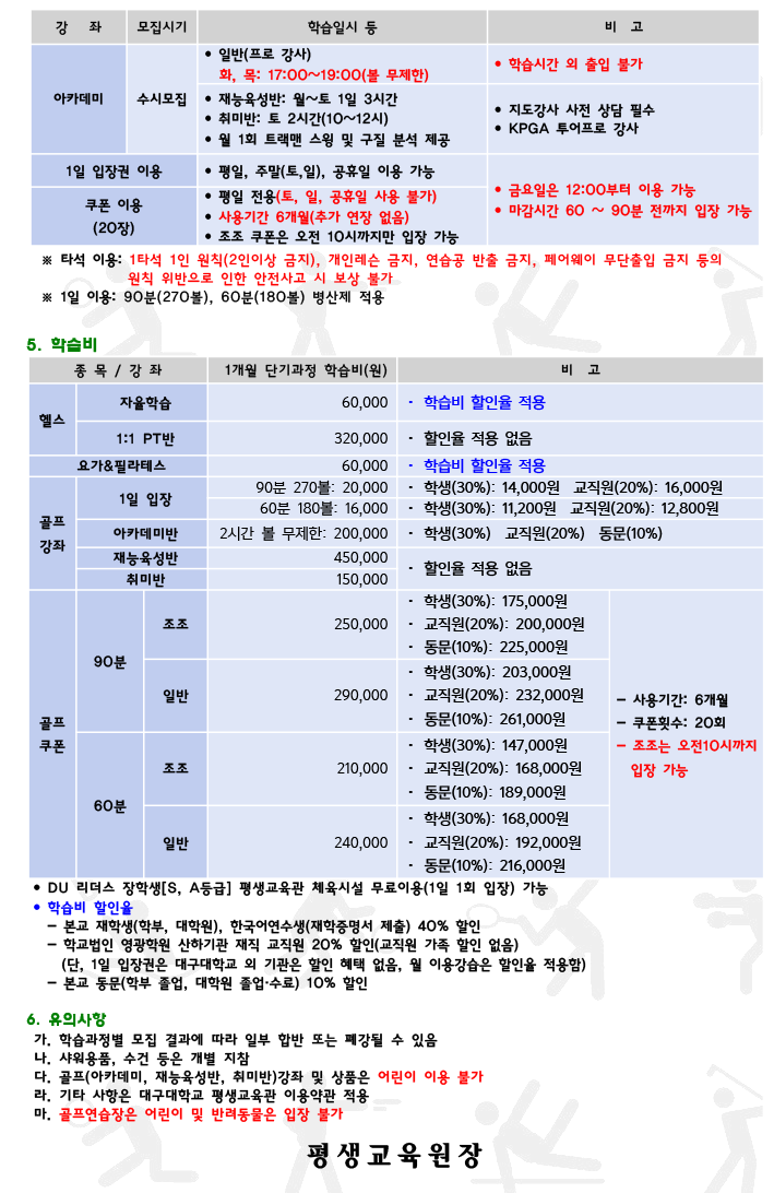 2025년 1월 생활체육교육센터 운영 계획(안)