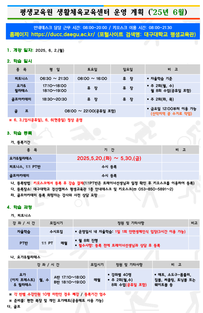 2025년 6월 생활체육교육센터 운영 계획(안)