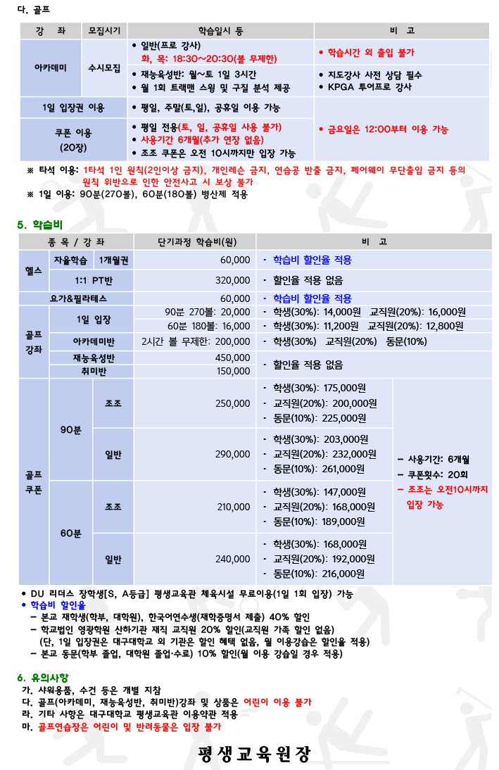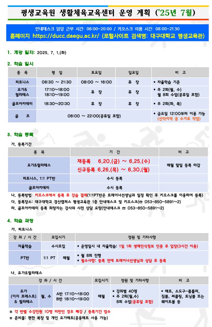 2025년 7월 생활체육교육센터 운영 계획(안)