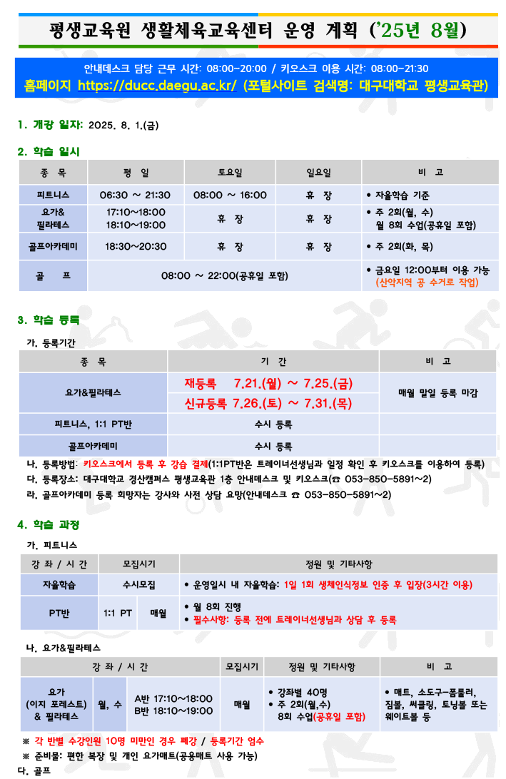 2025년 8월 생활체육교육센터 운영 계획(안)